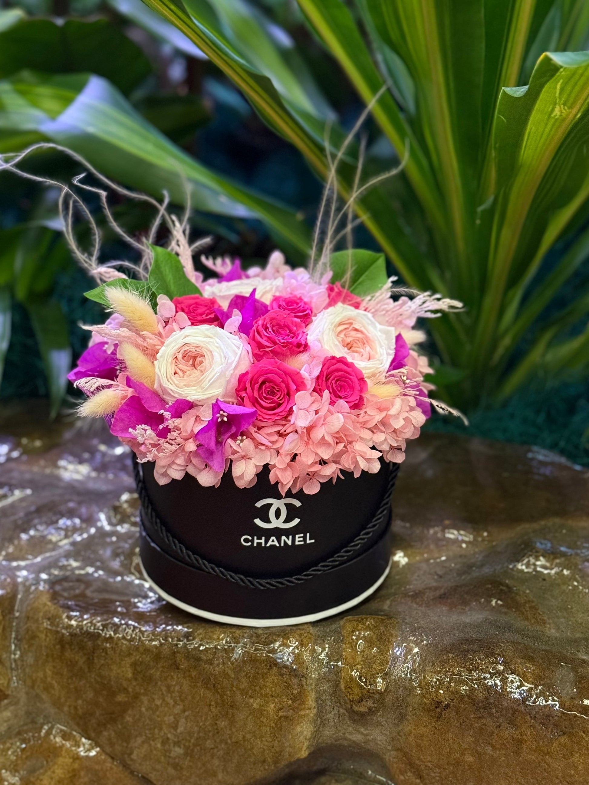 Celebrate enduring romance with Forever Blush Elegance, a sophisticated arrangement of premium silk blooms and preserved roses in delicate blush and striking pink hues. Nestled in our signature chic box, this timeless piece requires zero maintenance while maintaining its breathtaking beauty for years to come. A luxurious gift that transcends fleeting moments—a lasting testament to love and elegance.